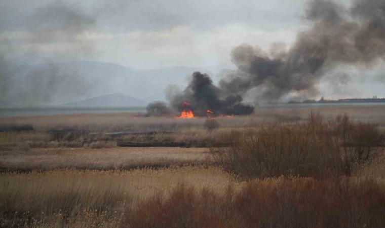 Konya’nın Beyşehir ilçesinde, Beyşehir Gölü Milli Parkı’ndaki sazlık alanda yangın çıktı.