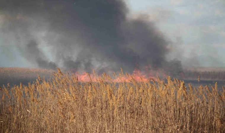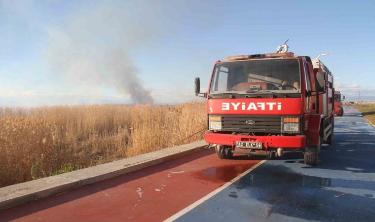 Konya’nın Beyşehir ilçesinde Beyşehir Gölü sazlıklarında çıkan yangın, balıkçı limanında teknesi bulunan balıkçıları korkuttu.