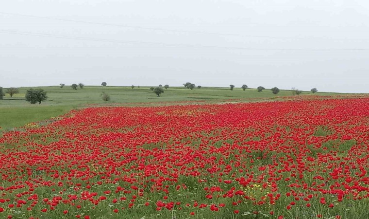 Konya’nın Beyşehir ilçesinde ekin tarlaları bahar mevsiminin son günlerinde gelen yağışlarla birlikte açan gelincik çiçekleriyle adeta kırmızıya boyandı.