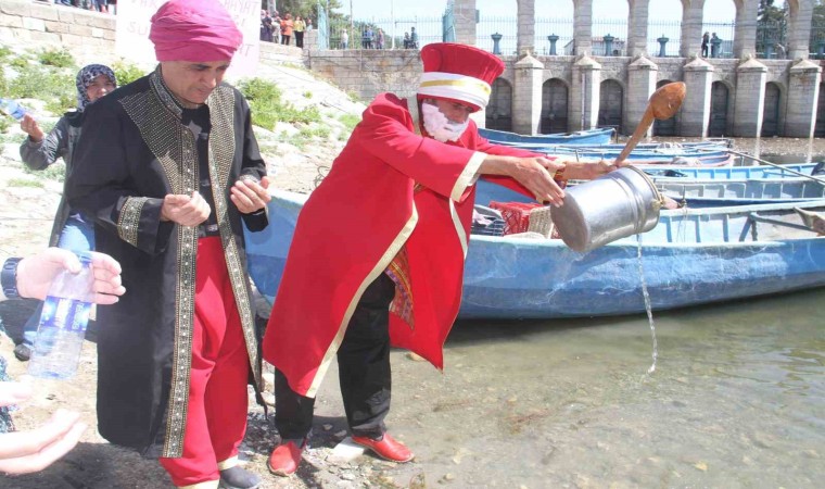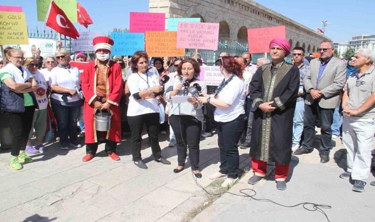Konya’nın Beyşehir ilçesinde, temsili Nasrettin Hoca, bilinçsiz tarımsal sulama, buharlaşma kayıpları ve farklı sebeplerle yakın gelecekte kurumasından endişe edilen Beyşehir Gölü’ne yanında getirdiği kova içerisindeki suyu çaldı, “ya tutarsa” dedi.