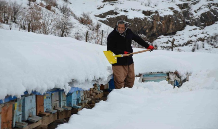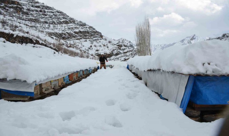 Arıcı Faruk Temel, günlerdir arlar için kar nöbeti tuttuklarını söyledi. Kış boyunca kar temizleme çalışmaları yaptıklarını belirten Temel, "Kar aşırı yağınca telef olmamaları için önlerini temizliyoruz. Bu yıl çok kar yağdı. Arılar sürekli donarak telef oluyor. Bu yüzden sürekli kar temizleme çalışmaları için nöbet tutuyoruz" dedi.
