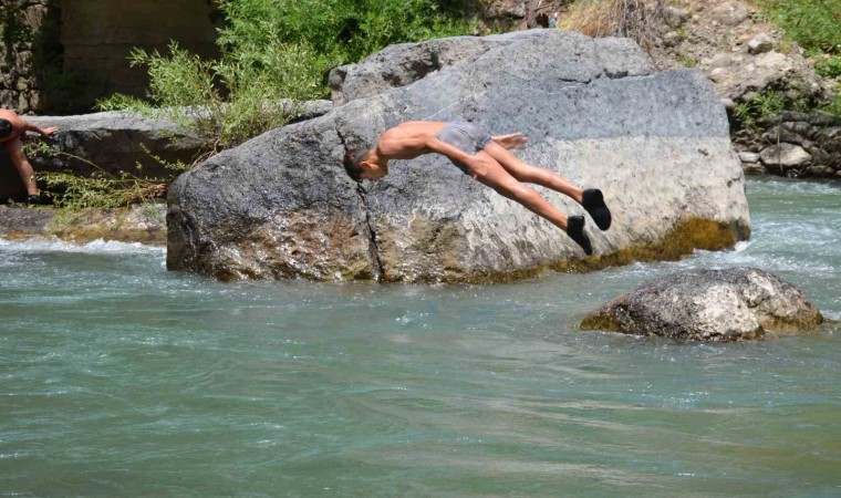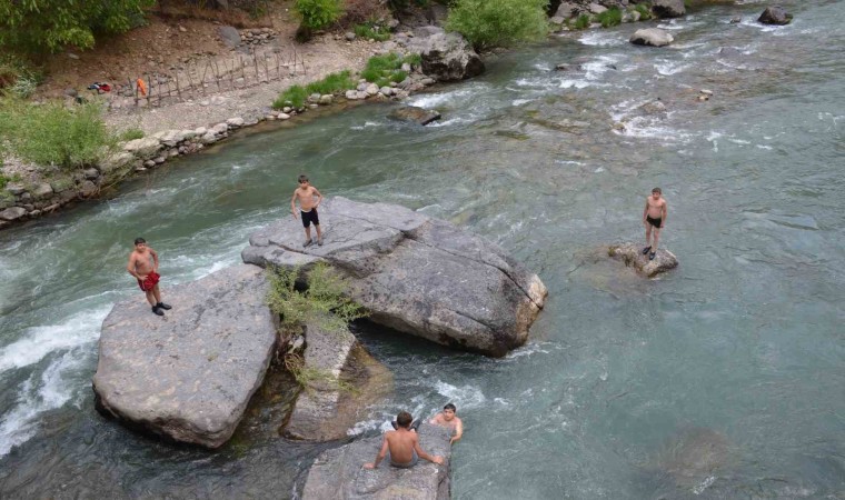 Reber Adıyaman ise "Güzel vakit geçiriyoruz. Buz gibi suda yüzüyoruz. Çok eğleniyoruz. Kendimize güzel bir yer yaptık, buradan atlıyoruz" şeklinde konuştu.