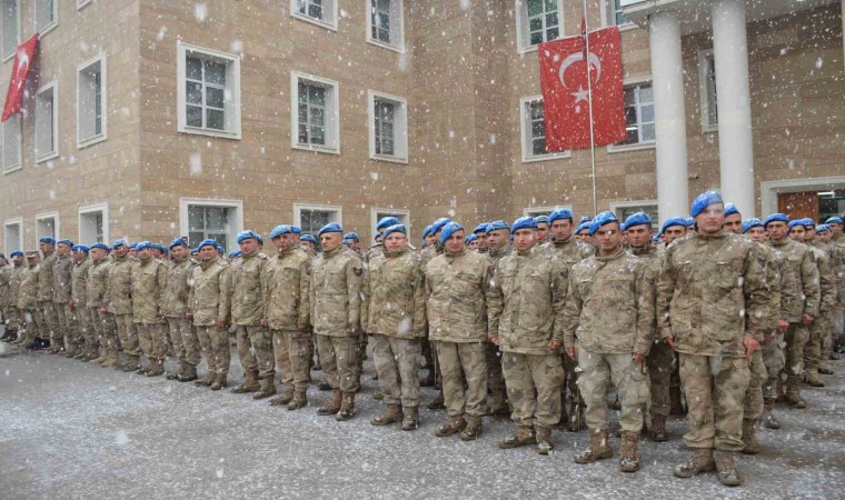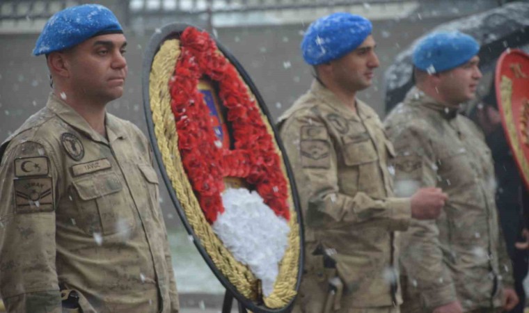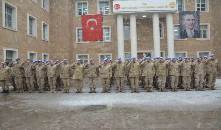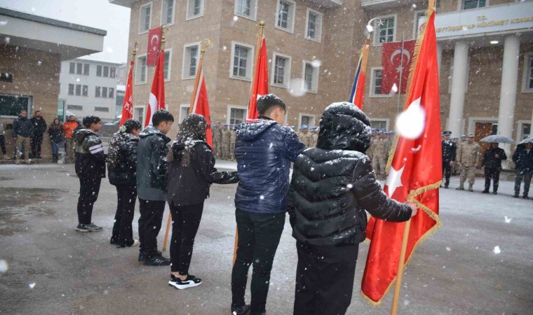 Şırnak’ın Beytüşşebap ilçesinde Mehmetçik ve öğrenciler, 18 Mart Çanakkale Zaferi ve Şehitleri Anma Gününü kar altında kutladı.