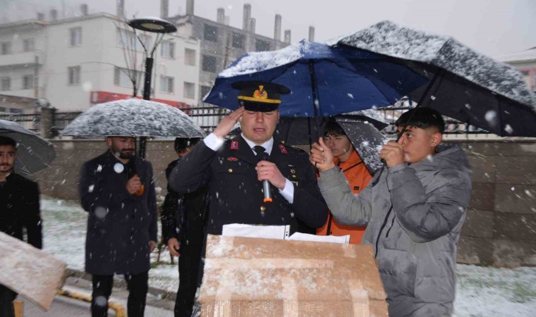 Kar yağışı altında geçen kutlamalarda bayrak ve flama kaldıran öğrenciler ve askerler dondurucu havada 18 Mart Çanakkale Zaferini kutladı, şehitleri andı. Öğrencilerden Ruken Cin, bayrak görevi aldığı için çok mutlu olduğunu söyledi. Cin, "Bayrağımızı taşımak beni mutlu ediyor. Üşüyorum ama burada olmaktan onur duyuyorum" dedi.