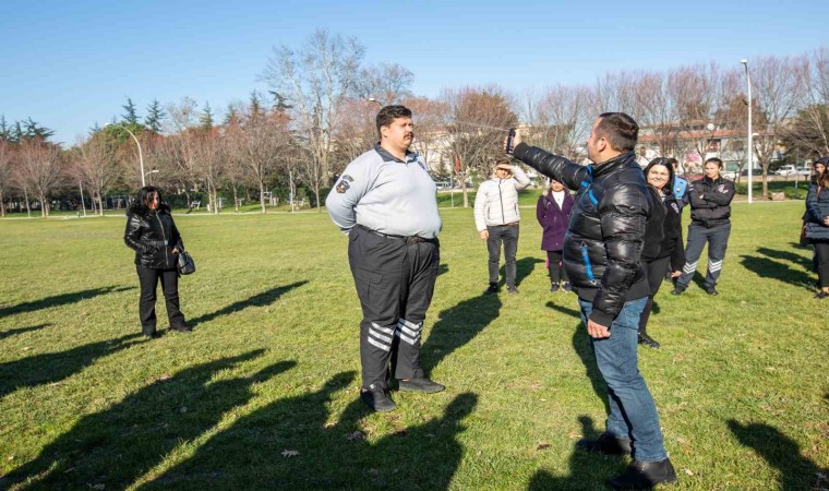 Bursa Büyükşehir Belediyesi’nin açık ve kapalı hizmet alanlarında görevli özel güvenlik personeli, göz yaşartıcı spreyin etkilerini önce kendi gözlerinde hissetti. Teorik eğitimde biber gazının nasıl kullanılacağını öğrenen personel, gazın etkisini ise yüzlerine biber gazı sıkılınca yaşayarak hissetti.