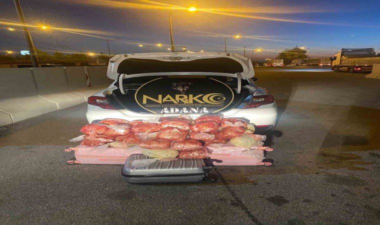 Adana polisi yaptığı operasyonda bir otomobilin bagajında, üzerine biber salçası ve zeytinyağı sürülmüş 38 pakette 27 kilo esrar ele geçirdi.