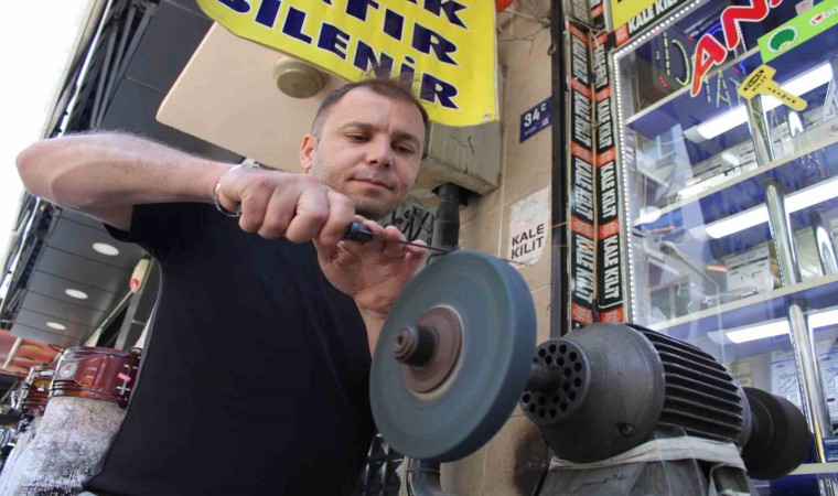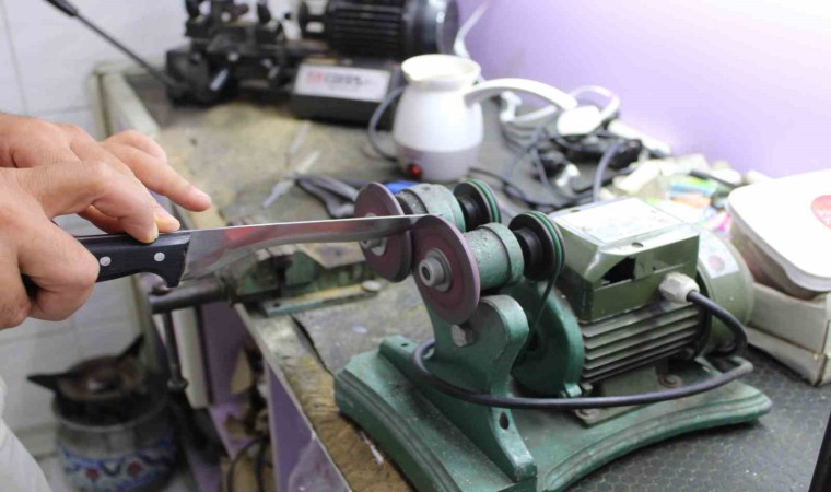 Kurban Bayramı’na sayılı günler kala bıçakçılarda hareketlilik yaşanırken, kurbana acı çektirmemek bıçaklarını keskinleştirmek isteyen vatandaşlar da bıçakçıların yolunu tuttu. Genellikle bayrama bir gün kala bileme yoğunluğu olduğuna dikkat çeken bıçak bileme ustası Sercan Durmaz, vatandaşlara ’Son günü beklemeyin’ çağrısı yaptı.