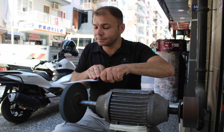 Her yıl olduğu gibi bu yıl da Kurban Bayramı öncesi çarşı ve pazarda hareketlilik başladı. Hareketliliğin yoğun olarak yaşandığı yerlerden biri de bıçakçılar oldu. Yaklaşan Kurban Bayramı ile birlikte Aydın’da bazı vatandaşlar, kurban kesimi için yeni bıçak almayı tercih ederken, bazıları da eski bıçaklarını biletmeyi tercih ediyor. Eski bıçaklarını biletmek isteyen vatandaşlar bileyicilerin yolunu tutarken bıçak bileme ustaları da vatandaşların taleplerini yetiştirmek için yoğun mesailerine başladı.