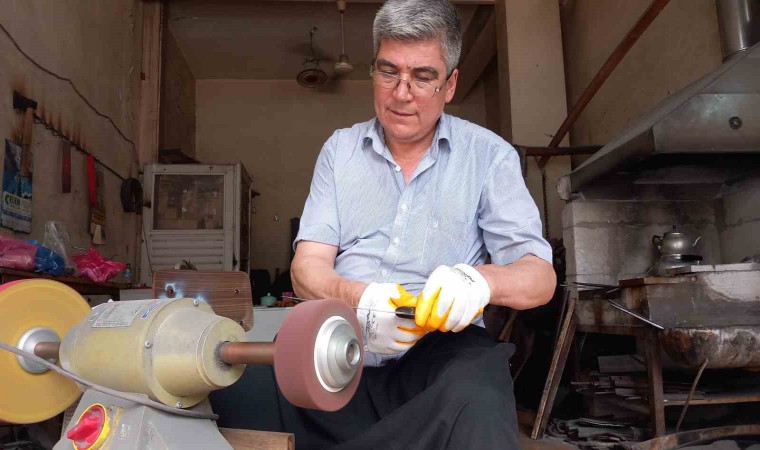 40 yıllık tapan bıçağı üreticisi Mustafa Ocak da “Bugünlerde Kurban Bayramı öncesi yoğun bir mesai yapıyoruz. Vatandaşlarımızın genelde Tapan ve yöresinden boynuzlu bıçak talebi oluyor. Biz genelde isteğe göre ve siparişe göre boynuz bıçak, yerine göre normal tapan bıçağı imalatı yapıyoruz. Bugünlerde üretimimiz oldukça yoğun. Şehir dışından da vatandaşlarımız talepte bulunuyorlar” ifadelerini kullandı.