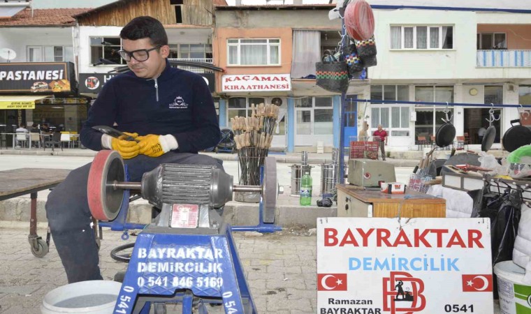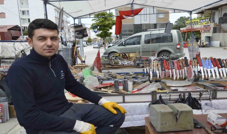 Burdur’un Gölhisar ilçesinde, Cumhuriyet Meydanı’nın çevresine tezgahlarını açan bıçak bileme ustaları Kurban Bayramı öncesi vatandaşlara hizmet veriyorlar. Bu satıcılardan Selami Bayraktar (23), “Baba mesleğim olan demircilik ve bıçak bileme işini yaparak geçimimizi kazanmaya çalışıyoruz. Okulda eğitimini aldığımız soğuk ve sıcak demircilik dalları yanında Kurban Bayramı öncesi bıçak bileme işini de yaparak halkımıza hizmet veriyoruz. Babamın mesleğini sürdürdüğüm için gururlu ve mutluyum, herkese şimdiden iyi bayramlar” dedi.