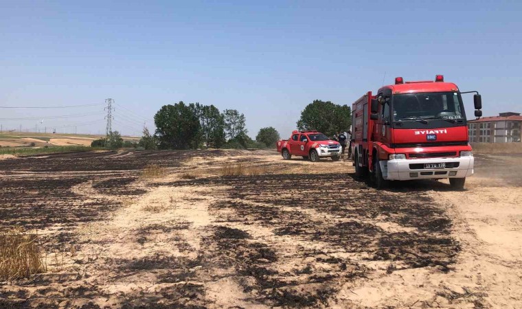 Tekirdağ’ın Çorlu ilçesinde ekili buğday tarlası ve biçilmiş arazi çıkan yangında küle döndü.
