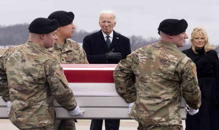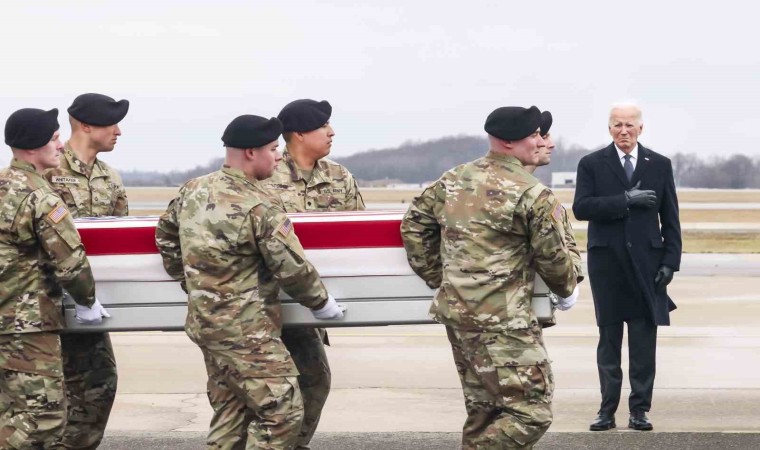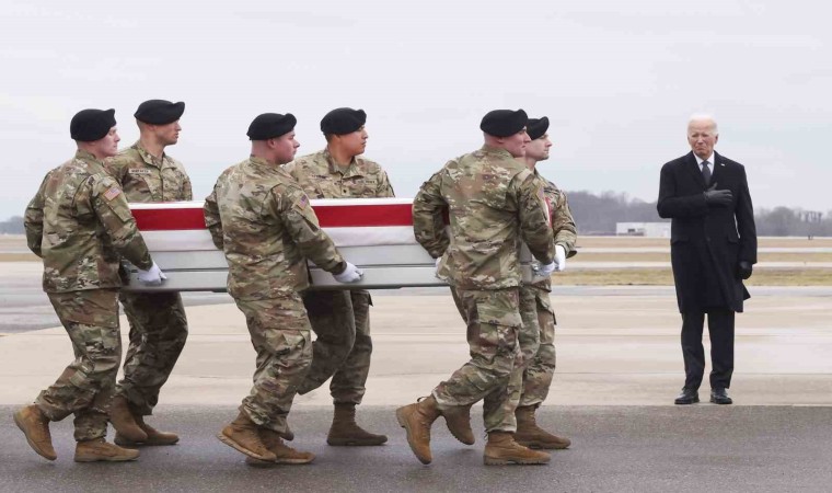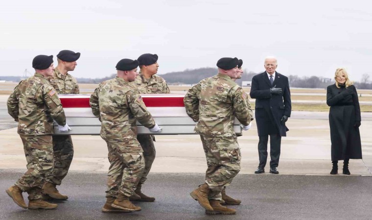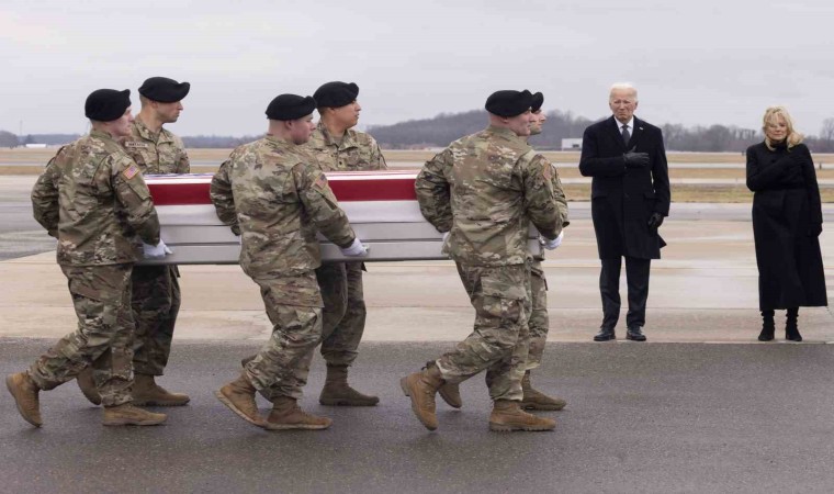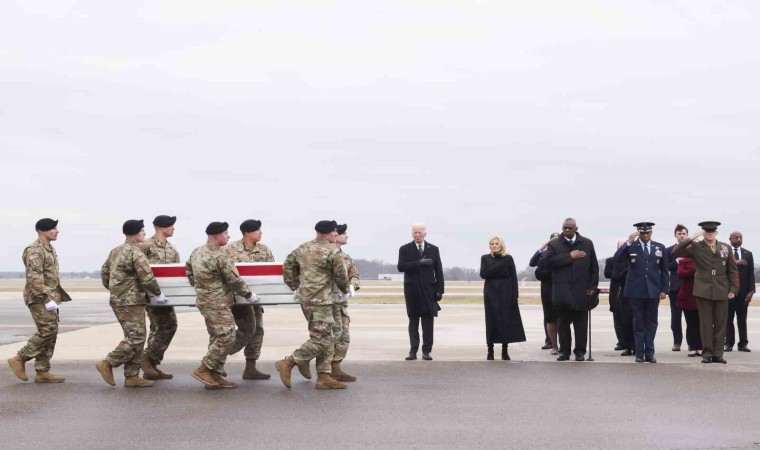 Ürdün’de Suriye sınırına yakın bir bölgede bulunan üsse düzenlenen dron saldırısında ölen 3 ABD askerinin cenazeleri ülkelerine getirildi. Delaware eyaletindeki Dover Hava Kuvvetleri Üssü’ne getirilen cenazeler için düzenlenen törende ABD Başkanı Joe Biden da hazır bulundu. ABD Hava Kuvvetleri tarafından “cenazelerin onurlu nakli” olarak adlandırılan törende, Biden ve eşi Jill Biden önce uçağın kargo bölümündeki bayrağa sarılı tabutların önüne gelerek saygı duruşunda bulundu. Uzun, siyah bir palto giyen ve üzgün olduğu görülen Biden, askerlerin cenazelerinin uçaktan çıkartılarak araca koyulması sırasında ise elini kalbine götürdü. Cenazeleri taşıyan aracın üsten ayrılmasının ardından tören sona erdi.