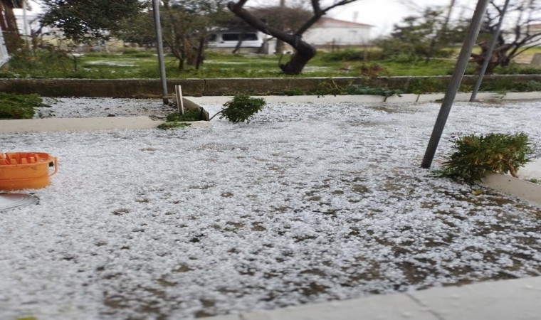 Biga ilçesine bağlı Karabiga beldesi açıklarında denizde hortum oluştu. Vatandaşların cep telefonu kamerasına yansıyan hortum, bir süre sonra kayboldu. Öte yandan kentte etkili olan dolu yapışı evlerin bahçelerini beyaza bürüdü.