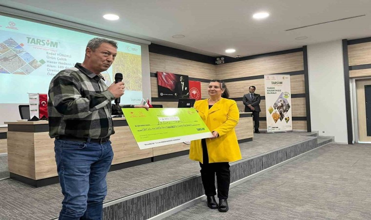 Çanakkale’nin Biga ilçesinde 3 ay önce yaklaşık 45 bin dekar alanın etkilendiği afet sonrası üreticilere temsilci çekler dağıtıldı.