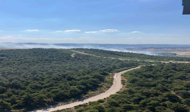 Balıkesir’in Bigadiç ilçesinde ormanlık alanda çıkan yangına ekipler havadan ve karadan müdahale ediyor.