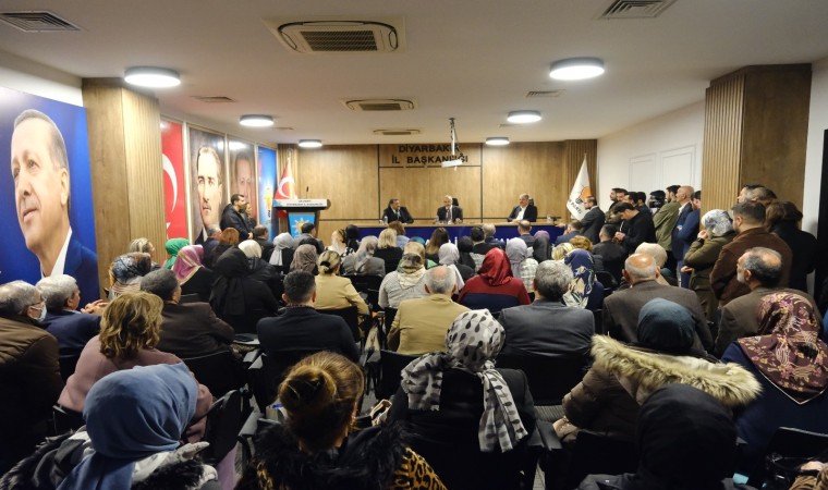 “Geçmişi var Diyarbakır’ın, Diyarbakır belli zaman dilimlerinde çok ciddi olaylar yaşamıştır, travmalar yaşamıştır, sıkıntılar yaşamıştır, yani burada yöneticilerin bizlerin eksikleri de olmuştur, bazı sıkıntılar yaşadık ama şimdi Diyarbakır’ın önünde güzel bir gelecek var. Diyarbakırlı diyor ki ’bize hızlı tren ne zaman gelecek’, biz de diyoruz ki buranın projelerine başladık, ön etütlerini bitirdik, biz önümüzdeki süreçte bunu getireceğiz. Bakın biz 11, 12 tane ilimize doğrudan hızlı treni getirdik, 20’ye yakın ilimiz bundan doğrudan yararlanıyor baktığımız zaman. Yine bir otoyol talebi var, bunları yaptığımız zaman, güneyden geçecek otoyolla ilgili projemizi bitirdik, Irak’tan gelecek bir demir yolu ve otoyol var, onunla beraber bunu da yapacağız inşallah. Bunlar ne demektir, bunlar Diyarbakırlının Diyarbakır’da kalkınması, büyümesi, gelişmesi, iş, aş bulması demektir. Yani Diyarbakır’ın ihracatının gelişmesi demektir, Diyarbakır’ın sanayi bölgelerini de gezdim, çok ciddi bir atak yaptı, çok güzel bir aşama kaydetti, biz bunu huzur içerisinde inşallah böyle yürüteceğiz. Bizim huzurumuzu bundan sonra kimse bozamayacak.”