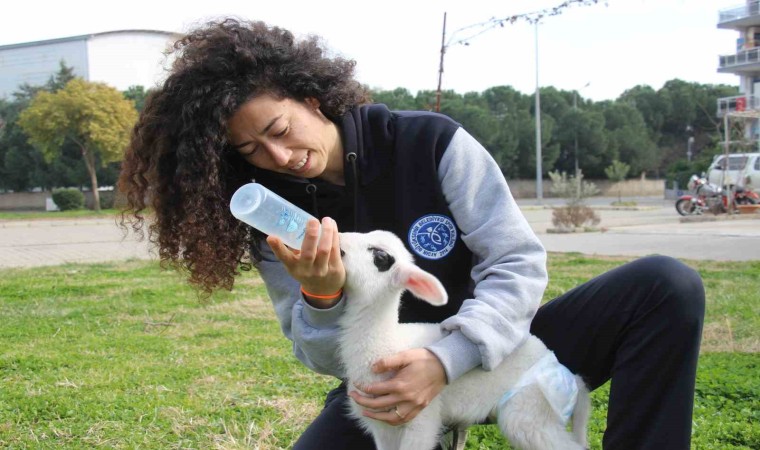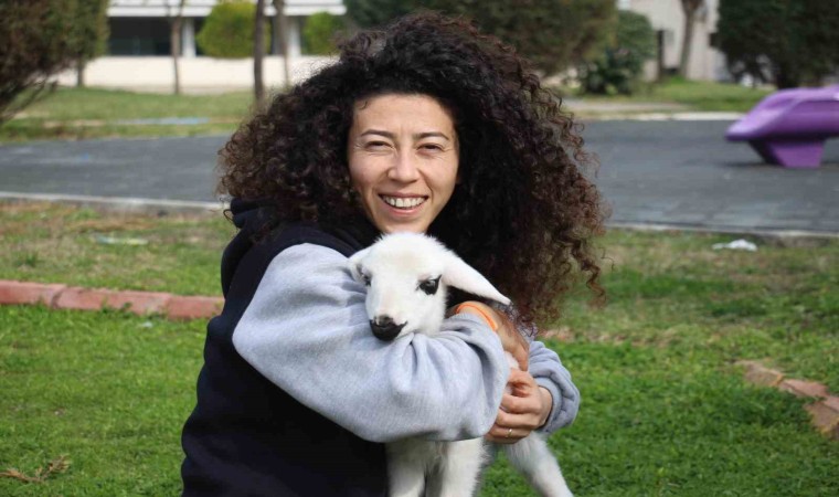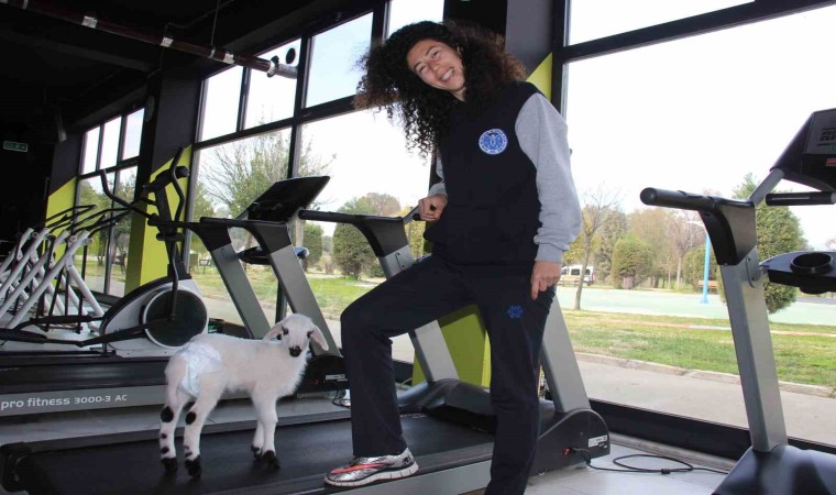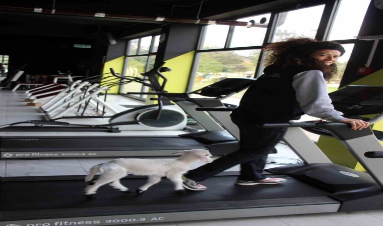 Aydın’ın Efeler ilçesinde sahiplendiği kuzuyu biberonla besleyip, birlikte koşu bandında yürüyerek spor yapan beden eğitimi öğretmeni 30 yaşındaki Melike Karcı Nurcan altını bezleyip ’Dobby’ adını verdiği sevimli kuzusu ile her gününü birlikte geçiriyor.