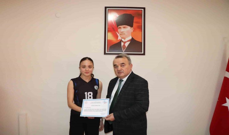 Okul Sporları Yıldız Kızlar Voleybol İl birincisi olan Meliha Ercan Ortaokulu sporcularını kabul eden Kaymakam Öztürk, İlçe Milli Eğitim Müdürü Servet Çetinkaya ile birlikte öğrencilere kupa ve başarı belgelerini takdim etti. Başarıları sporculara bundan sonraki yaşamlarında başarılar dileyen Öztürk, hepsini tek tek tebrik etti.
