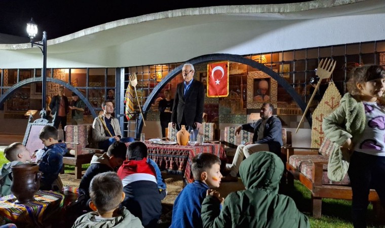 Bilecik’te 400 yıllık Osmanlı geleneği olan Çınar Altı Helva Sohbeti programı düzenlenirken çocuklar Hacivat-Karagöz Gölge Oyunu’nu pür dikkat seyretti.