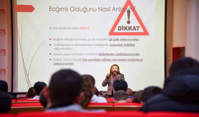 Uzm. Dr. Fulya Özbolat, sunumunda bağımlılık kavramını detaylı bir şekilde ele alarak bağımlılığın temelleri, bağımlılıkta tolerans ve bu durumun bireylerin yaşamı üzerindeki etkileri hakkında kapsamlı bilgiler verdi. Ayrıca bağımlılığın zararlarına dikkat çekerek, bireylerin bağımlı olduklarını nasıl anlayabileceklerini ve bu süreçte “hayır” diyebilmenin önemini vurguladı.