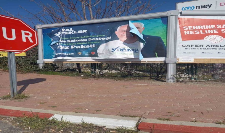 Cumhur İttifakı Bilecik Belediye Başkan Adayı Mustafa Yaman’ın seçim çalışmaları kapsamında hazırlattığı billboardlar tahrip edildi. AK Parti Bilecik İl Başkanlığı saldırıyı kınadı.