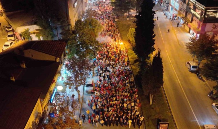 Bilecik Belediyesi tarafından 30 Ağustos Zafer Bayramı kutlama programı kapsamında yapılan fener alayında binlerce Bilecikli bir araya geldi.