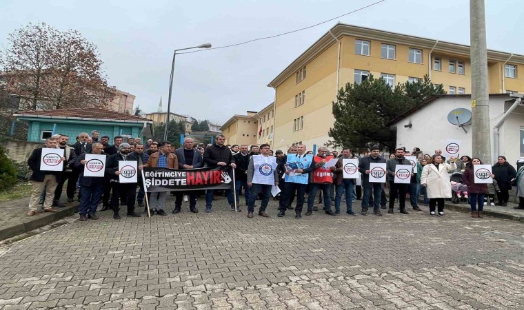 Yaşanan olayın ardından bir araya gelen sendika üyeleri, öğretmen ve kantinciye destek verdi, saldırıya tepki gösterdi.