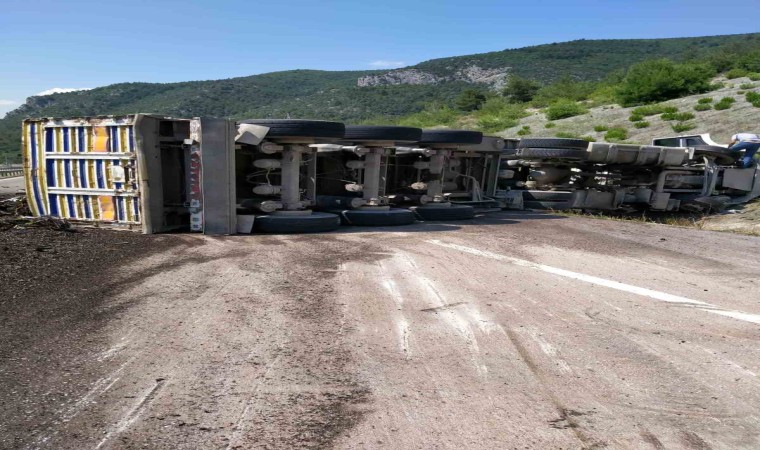 Alınan bilgilere göre; Bilecik’te Eskişehir istikametine seyir halinde olan Mehmet Kara (42) yönetimindeki 11 AAT 612 plakalı hurda yüklü tır, Ertuğrulgazi Tüneli’ne gelmeden sürücünün direksiyon hakimiyetini kaybetmesi sonucu kontrolden çıkarak orta refüje çarpıp yola devrildi. Kazada araç sürücü Mehmet Kara yaralandı. Yaralı olay yerine gelen sağlık ekiplerince yapılan ilk müdahalenin ardından Bilecik Eğitim ve Araştırma Hastanesine kaldırıldı. Yaralının sağlık durumun iyi olduğu öğrenilirken, jandarma kazayla ilgili inceleme başlattı.