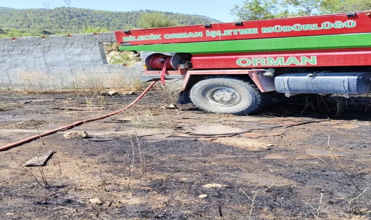 Bilecik’in Bayırköy beldesinde elektrik tellerine çarpan kuş sürüsü otluk alanda yangına sebep oldu.