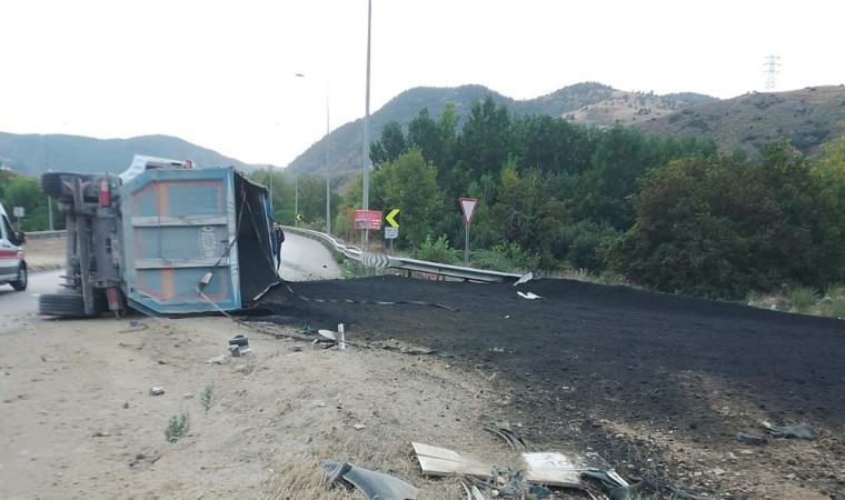 Alınan bilgilere göre; Bilecik-Bozüyük kara yolunda seyir halindeki Cihan K. yönetimindeki 06 HNT 21 plakalı kamyon, Küplü Kavşağı’na geldiğinde sürücü aracın kontrolü kaybetti. Kamyon yolunsa sağ tarafına devrildi. Dorsesinde yüklü kömür tozu çevreye yayıldı. O esnada kavşakta servis bekleyen Aslı A.’nın kaşına bir parça isabet etti. Kazada Cihan K. ile Aslı A. yaralanırken, yaralılar olay yerine gelen 112 Acil Servis ekiplerince yapılan ilk müdahalenin ardından Bilecik Eğitim ve Araştırma Hastanesine kaldırıldı.