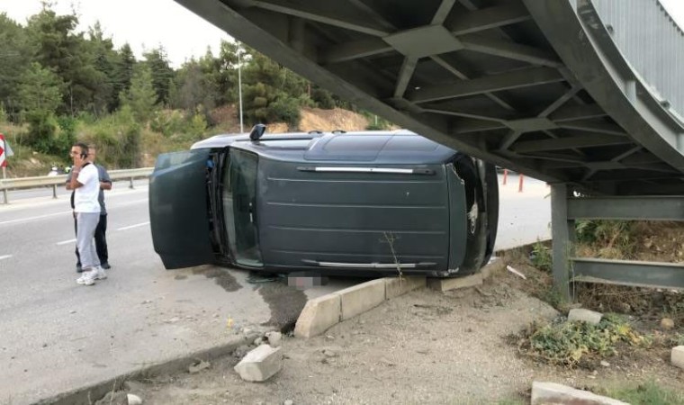 Bilecik’te seyir halinde kontrolden çıkan otomobil üst geçidin demir ayaklarına çarparak durabilirken, kazada 1 kişi yaralandı.