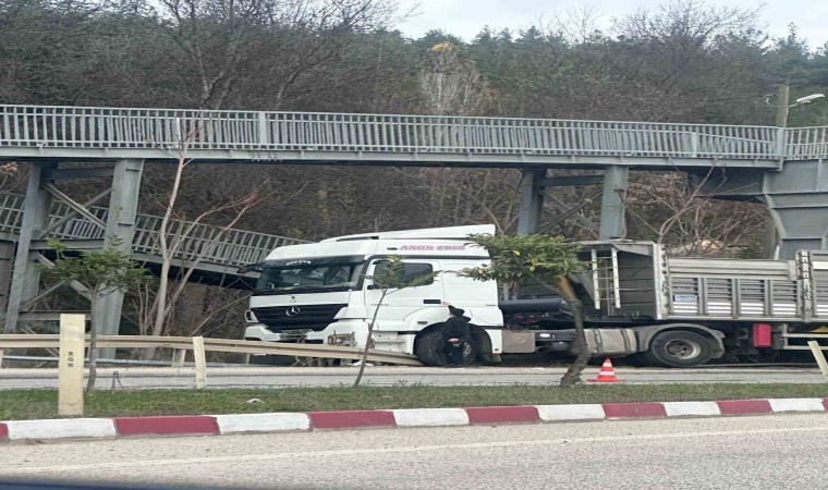 Bilecik’te sürücünün bir arızaya bakmak için indiği sırada aniden hareket eden tır, az kalsın üst geçidi yıkıyordu. Tırın hareket etmesi nedeniyle bulunduğu yerden düşen sürücü ise yaralandı.