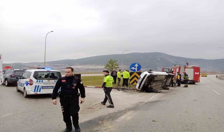 Alınan bilgilere göre; Bilecik kent merkezinden Bozüyük istikametine seyir halindeki 46 EJ4 70 plakalı otomobilin sürücüsü Metin T., TOKİ Kavşağına geldiğinde bir anda direksiyon hakimiyetini kaybetti. Kontrolden çıkan araç kavşak adasına çarparak durabildi. Yan yatan araçta yolcu olarak bulunan Havva T. yaralandı. Yaralı olay yerine gelen 112 Acil Servis ekiplerince yapılan ilk müdahalenin ardından Bilecik Eğitim ve Araştırma Hastanesine kaldırıldı.