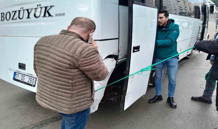 Kaza; Atatürk Bulvarı eski otogar girişinden meydana geldi. Alınan bilgilere göre; karayolları istikametine seyir halindeki Mustafa K. idaresindeki 11 HO 1055 plakalı şehir içi yolcu minibüsü, eski otogar girişinde Kadir Ş. idaresindeki 11 DS 260 plaka yolcu midibüsü ile çarpıştı. Kazada 11 HO 1055 plakalı şehir içi yolcu minibüsünde bulunan Emine Y. (45) yaralandı. Yaralı olay yerine gelen 112 Acil Servis ekiplerince yapılan ilk müdahalenin ardından Bilecik Eğitim ve Araştırma Hastanesine kaldırıldı.