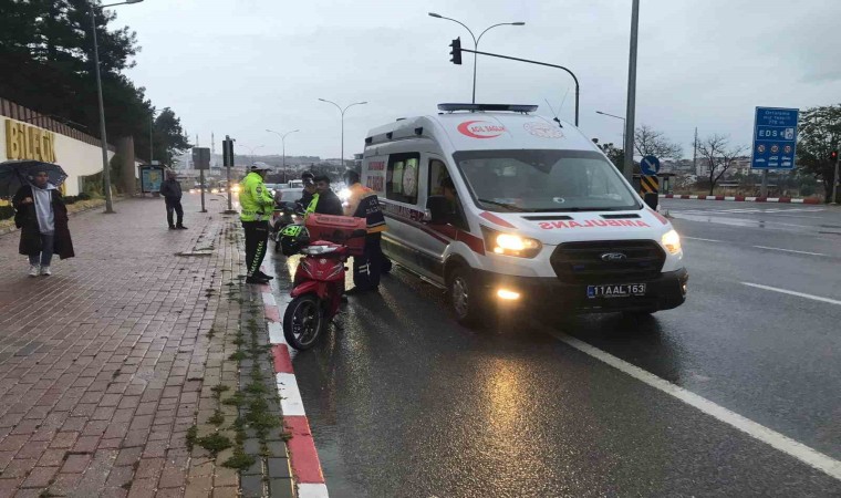 Kaza; Bilecik İl Özel İdare Kavşağı’ndan trafik ışıklarında meydana geldi. Alınan bilgilere göre; Bilecik kent merkezinden sanayi istikametine seyir halindeki Mırzali D., idaresindeki 16 AUH 606 plakalı motosiklet, yolun karşısına geçmek isteyen 10 yaşındaki M.E.A.’ya çarptı. Kazada motosiklet sürücüsü ve 10 yaşındaki yaya yaralandı. Yaralıları olay yerine gelen 112 Acil Servis ekiplerince yapılan ilk müdahalenin ardından Bilecik Eğitim ve Araştırma Hastanesine kaldırıldı.