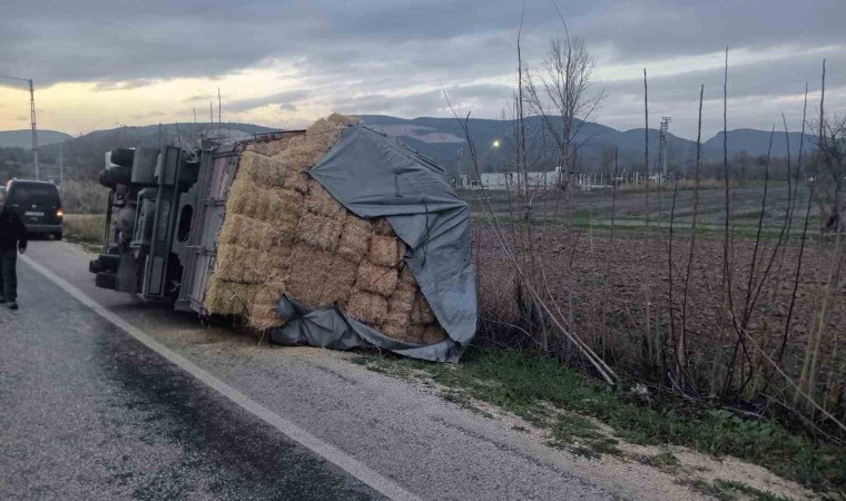 Alınan bilgilere göre; Bilecik’in Gölpazarı ilçesinden yüklediği saman balyalarını Sakarya’ya götürmek üzere yola çıkan kamyon sürücü Metin K, Küçükyenice Köyü mevkiinde aracın direksiyon hakimiyetini kaybetti. Kontrolden çıkan kamyon devrilirken, saman balyaları etrafa saçıldı. Meydana gelen trafik kazasında araç içinde tek başına bulunan sürücüsü kazayı burnu bile kanamadan atlattı. Kazayla ilgili inceleme başlatıldı.
