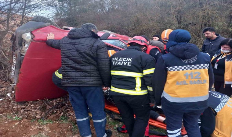 Alınan bilgilere göre; Bilecik’te İlyasbey Köyü’ne seyir halindeki 11 GH 177 plakalı otomobil sürücüsü Fahrettin E., bir anda direksiyon hakimiyetini kaybetti. Kontrolden çıkan araç şarampole uçarken, sürücü araç içinden çıkamadı. Kazayı gören diğer sürücülere araç içinde sıkışarak çıkamayan sürücü uzun uğraşlar sonrasın çıkardı. Yaralı sürücü Fahrettin E. olay yerine gelen 112 Acil Servis ekiplerince yapılan ilk müdahalenin ardından Bilecik Eğitim ve Araştırma Hastanesine kaldırıldı.