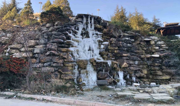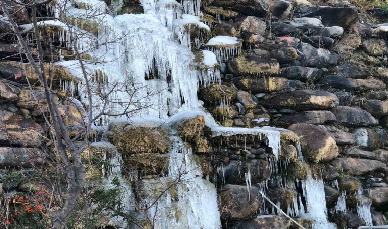 Yurdun büyük bir bölümünü saran soğuk hava Bilecik’te de etkisini sürdürürken, süs şelalesi dondu.