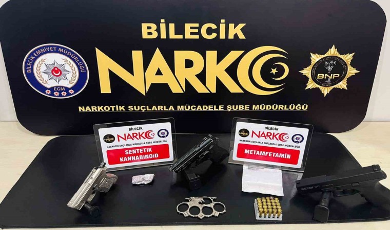 Bilecik İl Emniyet Müdürlüğü Narkotik Suçlarla Mücadele Şube Müdürlüğünce uyuşturucu madde kullanan, bulunduran, nakleden veya ticaretini yapan şahıs ya da organizasyonların deşifresine yönelik 3 ayrı operasyon düzenlendi. Operasyonda şahısların ikametinde, arabalarında ve kendi üzerlerinde yapılan arama sonucunda 351,84 gram gelen Sentetik Kannabinoid (Bonzai) maddesi, 8,46 gram gelen metamfetamin maddesi, 3 adet tabanca, 25 adet tabanca fişeği, 2 adet bong aparatı ele geçirildi. Yürütülen operasyonlarda toplam 3 şahıs yakalanarak gözaltına alınmış, şahıslar hakkında ’Uyuşturucu Madde İmal Ve Ticareti’ ve ’Kullanmak için uyuşturucu madde satın almak, kabul etmek veya bulundurmak’ suçları kapsamında yasal işlem yapılmıştır. Emniyetteki işlemleri ardından adliyeye sevk edilen şahıslardan S.Y.K. isimli şahıs adli kontrol şartı ile serbest bırakılmış olup B.P. ve B.Ü. isimli şahıslar çıkarıldığı Sulh Ceza Hâkimliğince tutuklanarak Bilecik M Tipi Ceza İnfaz Kurumuna teslim edildi.