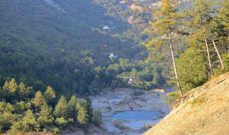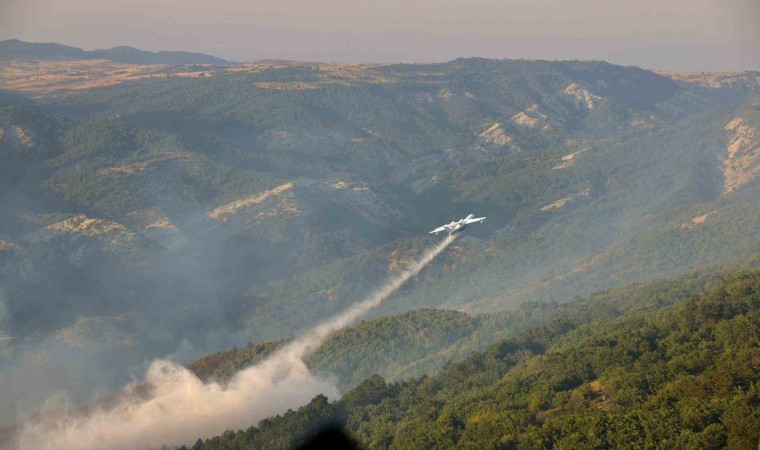 Bilecik’in Yenipazar ilçesinde bağlı Yukarı Çaylı Köyü ile Bolu’nun Göynük ilçesi sınırında bugün öğleden sonra başlayan orman yangını halen kontrol altına alınamadı. Yangına karadan ve havadan müdahale edilirken, Bolu ve Adapazarı’ndan da takviye ekipler geldi. Bir ara kontrol altına alınan yangın, rüzgarın etsiyle yeniden büyürken, Vali Kemal Kızılkaya, Kaymakam Rümeysa Sena Kurt, Bursa Orman Bölge Müdürü Esat Şimşek ve İl Jandarma Komutanı Muzaffer Sandal olay yerinde incelemelerde bulundu. Vali Kızılkaya ardından helikopter ile alanı havadan inceleyerek, “Bölgemizde çıkan orman yangınında 8 helikopter, 4 uçak, 50 arazöz, 10 iş makinesi, 300 personel görev alıyor. Yangın şu an 26 hektar bir alanda etkili olurken, havadan ve karadan müdahale devam etmektedir. Rabbim, Yukarı Çaylı Köyü’müzde yaşanan ve şu ana kadar 26 hektarlık alanda etkili olan orman yangınıyla orman kahramanlarımızın üstün gayreti sayesinde mücadelemiz devam etmektedir” dedi.