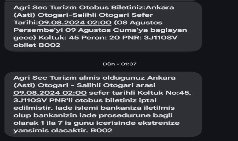 Ağrı’dan İzmir’e gitmek üzere yola çıkan ve sürücüsünün kimliği henüz belirlenemeyen Öz Ağrı Seç Turizm firmasına ait 04 AAV 951 plakalı yolcu otobüsünün Ankara’da kaza yapmasının ardından 9 kişi hayatını kaybetti, 27 yaralandı. Ankara’da yaşayan ve sabah saat 02.00’de Manisa’ya seyahat etmek için Öz Ağrı Seç Turizm firmasının kaza yapan otobüsünden bilet alan Faruk Kaya, otobüsün 2 saat gecikeceğini öğrenince internetten aldığı bileti iptal etti. Başka bir firmadan bilet alarak Manisa’ya doğru hareket eden Kaya, bineceği otobüsün kaza yaptığını öğrendiğinde ise şoke oldu. Otobüse Ankara’dan tek bilet alan kişi olan ve bileti iptal etmesinden dolayı yaşanan kazadan kıl payı kurtulan Kaya, otobüse binmekten neden vazgeçtiğini İHA’ya anlattı.