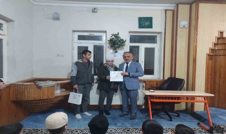 Bayburt İl Müftüsü Bayram Danacı Oruçbeyli Kur’an kursu öğrencilerini ziyaret ederek, Kur’an kursu öğrencileri arasında yapılan bilgi yarışmasında dereceye giren öğrencilere hediyelerini verdi.
