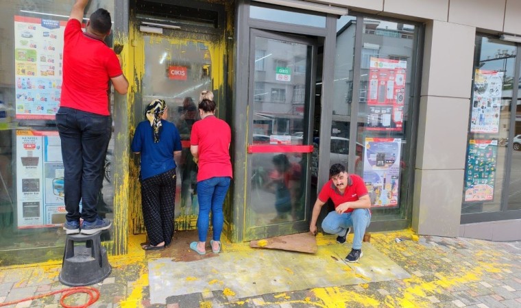Olay, Erzin ilçesi İsalı Mahallesi’nde bulunan BİM şubesinde yaşandı. Gece saat 03.45 sıralarında BİM’e motosikletle gelen şahıs, markete yağlı boyayla saldırıda bulundu. Yaklaşık 1 dakikada marketin camlarını sarıya boyayan şahsın saldırı anları güvenlik kamerasına yansıdı. Sabah saatlerinde iş yerini açmak için markete gelen çalışanlar ise karşılaştıkları durum nedeniyle konuyu polis ekiplerine bildirdi. Market çalışanları, yağlı boyayla kaplanan camları temizledi.