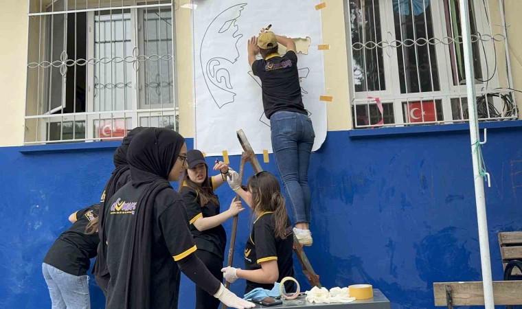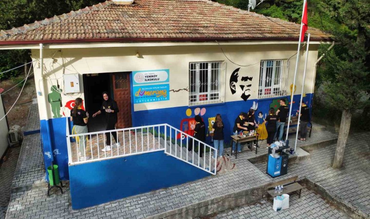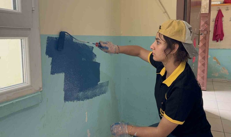 Düzce Üniversitesi’nde öğrenciler, Hatay’da depremde hasar alan okulun yenilemesini yaparak konteynerdeki eğitimi okula taşıdı.