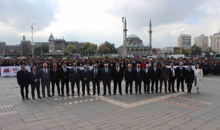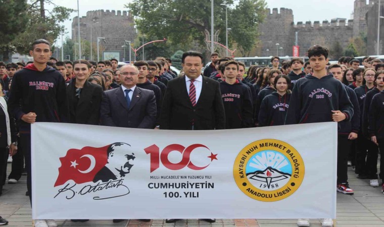 Kayseri İl Milli Eğitim Müdürlüğü tarafından düzenlenen etkinliğe, Nuh Mehmet Baldöktü Anadolu Lisesi, Kayseri Fen Lisesi, Osman Ulubaş Köşk Anadolu Lisesi, Sema Yazar Anadolu Lisesi, Nuh Mehmet Küçükçalık Anadolu Lisesi ve Sami Yangın Anadolu Lisesi olmak üzere toplam 6 okuldan bin 200 öğrenci katıldı. Etkinlikte bin 200 öğrenci hep bir ağızdan İstiklal Marşı’nın 10 kıtasını okudu. Burada bir konuşma yapan Kayseri İl Milli Eğitim Müdürü Bahameddin Karaköse; “Bugün cumhuriyetimizin 100. yılı dolayısıyla düzenlemiş olduğumuz bu etkinlikte sizleri bu şekilde görmek, geleceğe umutla bakmamızı sağlıyor. Sizlerle gurur duyuyoruz. Öncelikle Filistin’de yaşanan insanlık dramını, insanlık zulmünü kınıyoruz ve bir an önce zulmün ve savaşın bitmesini istiyoruz. Sizleri geleceğe hazırlarken, dimdik durmanızı, bu vatanı, bu bayrağı, bu sancağı sonuna kadar sahiplenmenizi ve bunun içinde ne gerekiyorsa hep beraber yapacağımızı buradan teminat halinde sizlere söylüyorum. Sizler; içerisinde bulunduğumuz dünya düzeni içerisinde kendinizi en iyi şekilde hayata hazırlamak, günün getirdiği şartlara sahip olmanız ve bizim bayrağımızın yüzlerce yıl dalgalanması için sizlerin duruşunuzun devam etmesi bizler için çok önemli. Bizlerin en güçlü yanı sizlersiniz. İyi ki varsınız. Sizleri çok seviyoruz” ifadelerini kullandı.