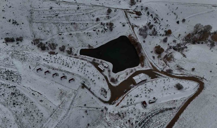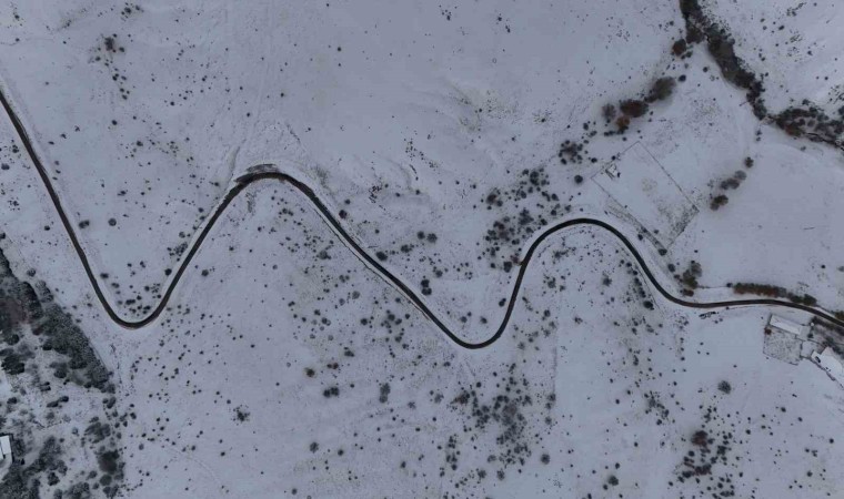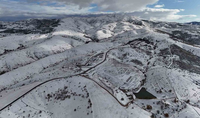 Kırıkkale’deki Dinek Dağı’nda, mevsimin ilk kar yağışıyla oluşan masalsı güzellik havadan görüntülendi.