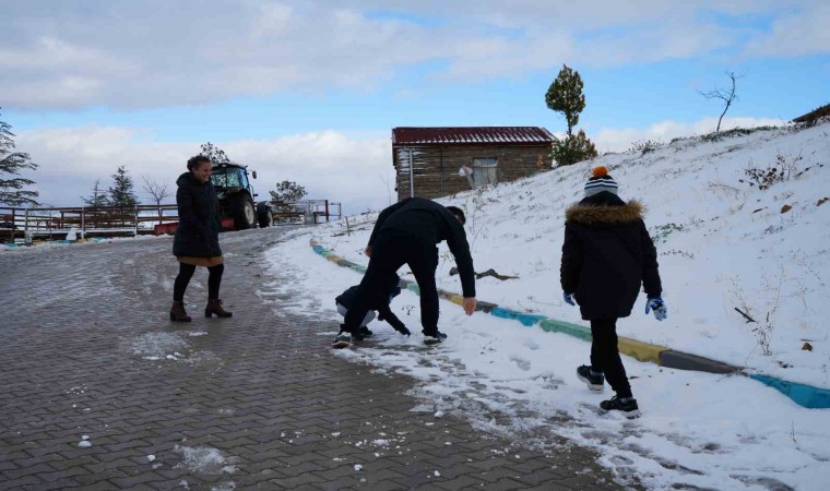 Tesis görevlisi Fatih Kayabaş, kar yağışının mutluluğunu dile getirerek, "Burası bin 744 rakımlı Dinek Dağı. 2 yıldır kar yağmıyordu, bu yıl özlediğimiz kar erken geldi. Eğlenmek, kar görmek, kafa dinlemek isteyen herkesi buraya bekliyoruz" dedi.