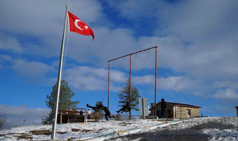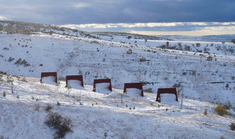 Balışeyh ilçesindeki bin 744 rakımlı Dinek Dağı, mevsimin ilk kar yağışıyla beyaz gelinliğini giydi. Atlı Safari ve Doğa Parkı’nda dronla kaydedilen görüntüler, kartpostallık manzaralar oluşturdu. Tesis ziyaretçileri, karın keyfini çıkarırken eşsiz manzaraya karşı salıncakta sallanarak unutulmaz anlar yaşadı. Dinek Dağı, karla kaplanan doğal dokusuyla ziyaretçilere görsel bir şölen sundu. Doğada zaman geçirmek isteyenler için ideal bir kaçış noktası haline gelen bölge, piknik yapmak isteyenlerin de vazgeçilmez adresi oldu.