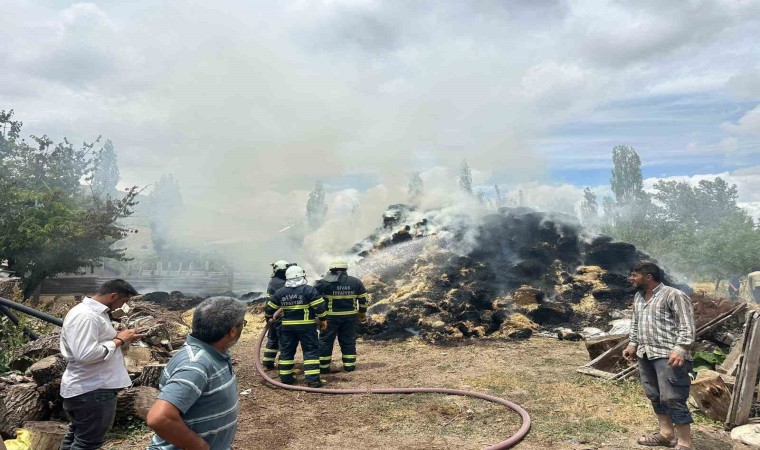 Sivas’ın merkeze bağlı bir köyünde çıkan yangında bin balya saman yandı.