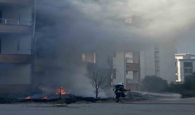 Adıyaman’da, bir binanın giriş kısmında yakılan araç lastikleri korkuya neden oldu.